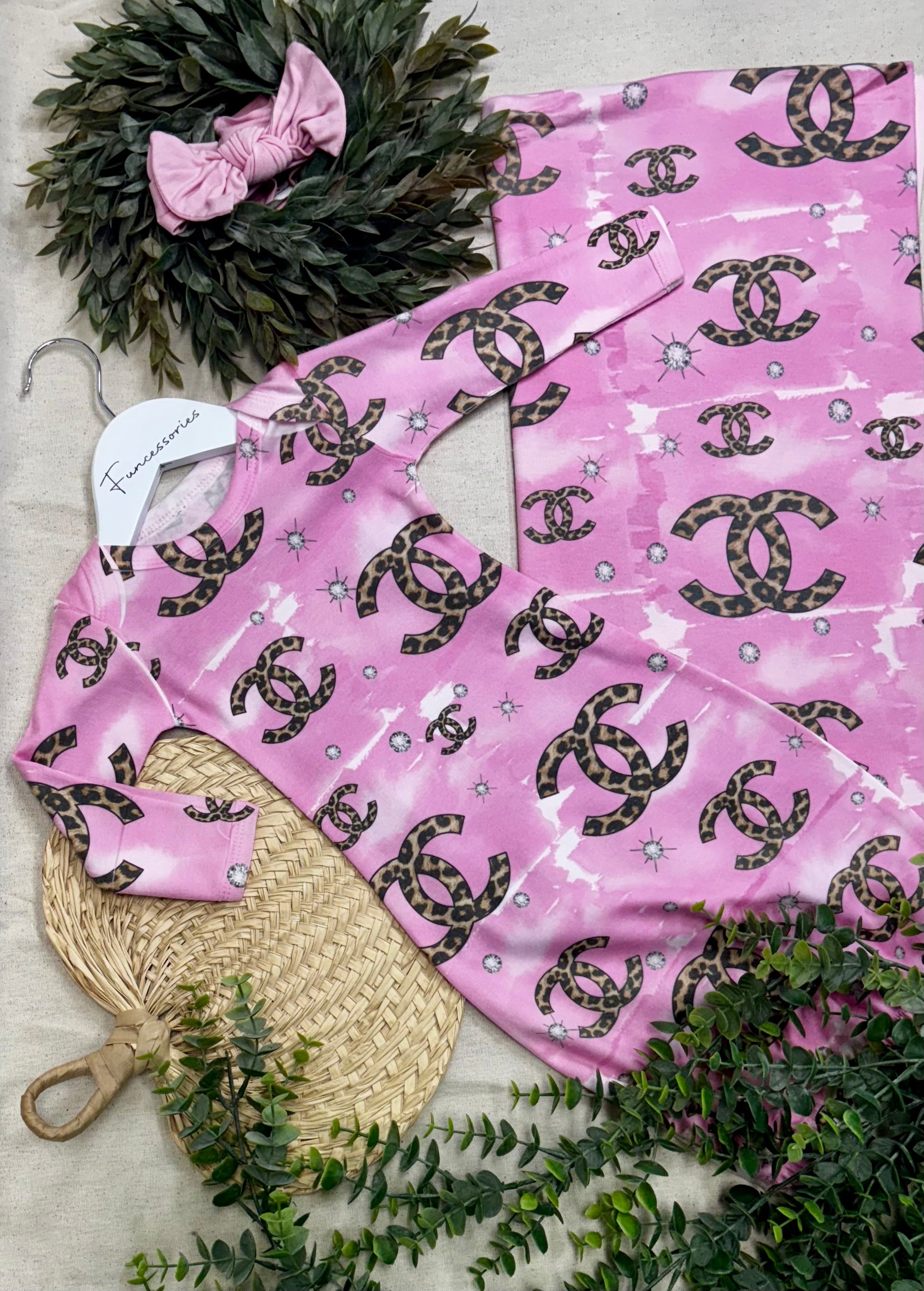 CC Leopard pink gown and blanket set